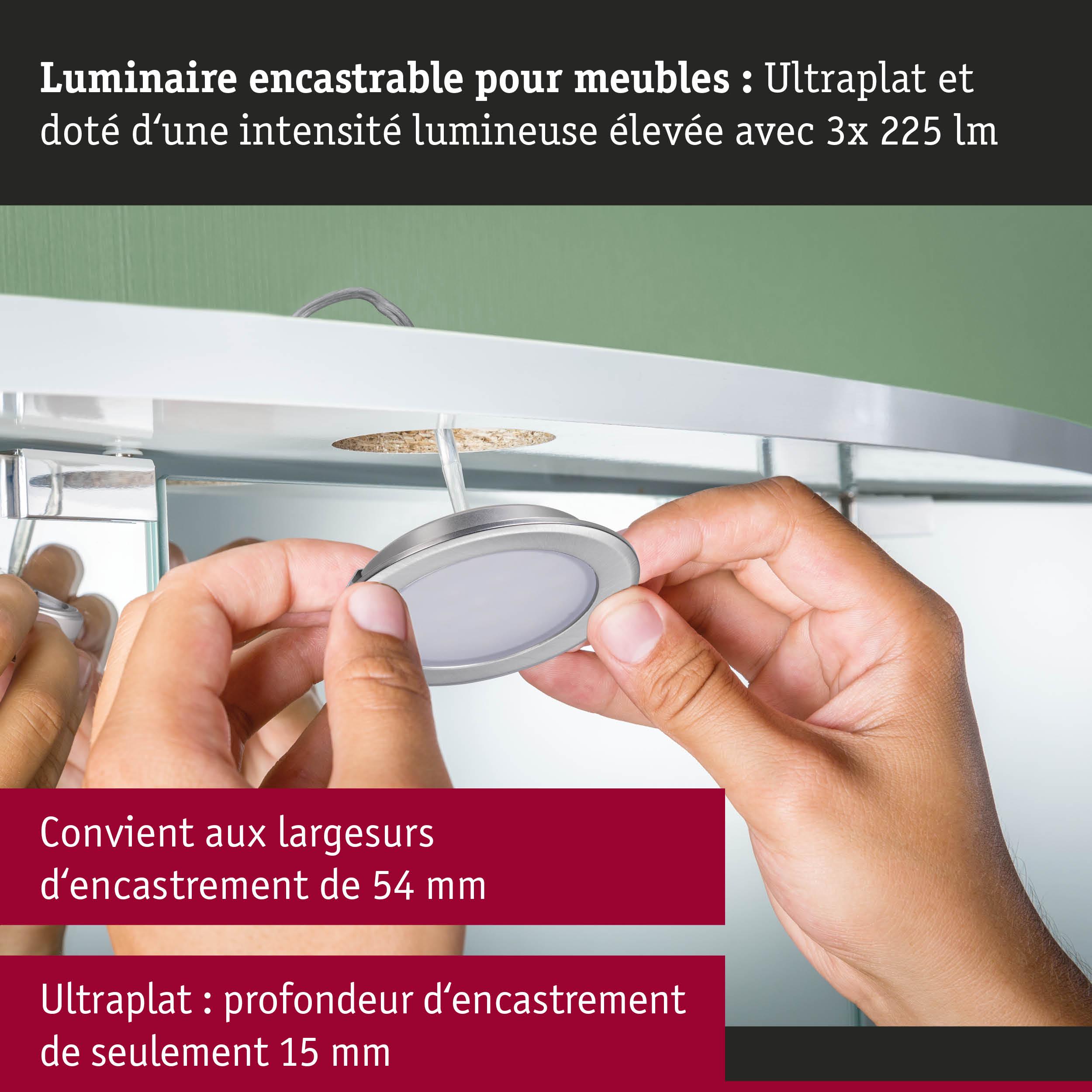 Éclairages encastrés LED pour meubles Kit de 3 rond 65mm 3x2,5W 3x180lm 230/12V 4000K Acier brossé