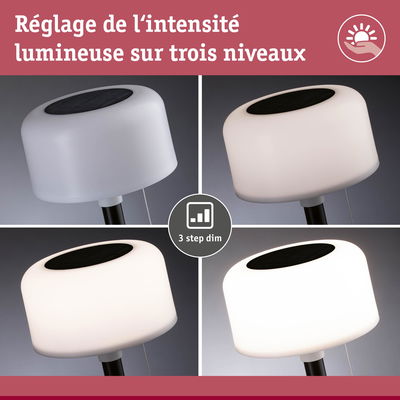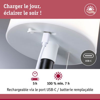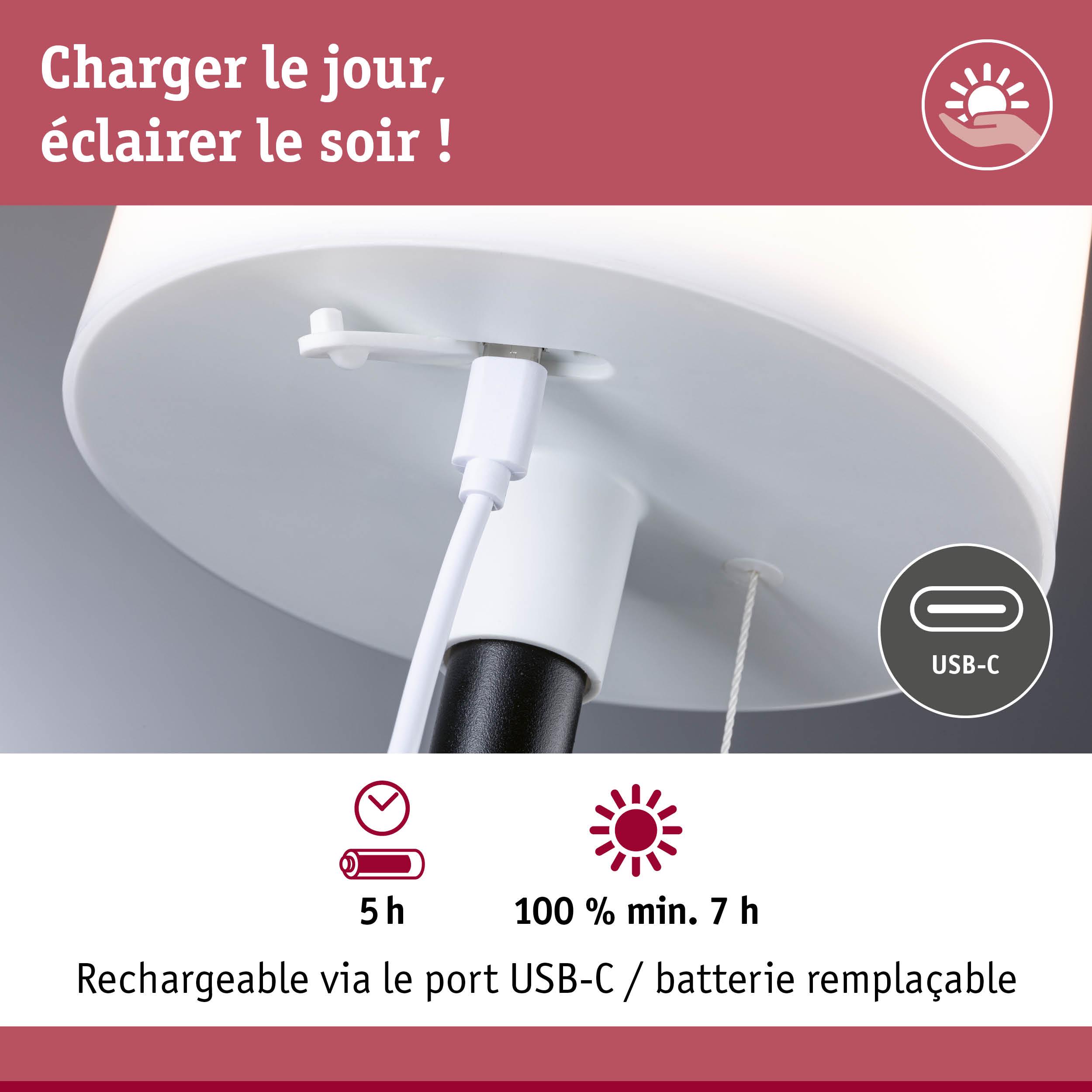 La lampe à poser LED mobile Bartja Noir est parfaitement adaptée à l'intérieur comme à l'extérieur. Grâce à son module solaire intégré, elle peut être rechargée facilement par le soleil ou via une connexion USB-C. L’interrupteur à tirette pratique permet de faire varier l’intensité lumineuse sur trois niveaux différents, créant ainsi une possibilité d’éclairage personnalisée. Une ampoule LED intégrée de température de couleur blanc chaud 2 700 K garantit une atmosphère agréable dans toutes les pièces. La batterie peut être facilement retirée par l'utilisateur final. Avec un indice de protection IP44, cette lampe à poser est également protégée contre les projections d'eau. Le design intemporel de Bartja s'intègre harmonieusement dans tous les environnements tout en lui conférant une touche d'élégance. Que ce soit à l’intérieur ou à l’extérieur, la lampe à poser LED mobile Bartja est la solution idéale pour avoir de la lumière exactement là où vous en avez besoin.