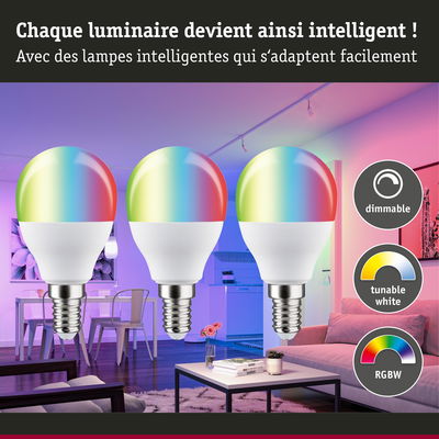 Standard 230 V Smart Home Zigbee 3.0 Sphérique LED E14 3x470lm 3x5W RGBW+ gradable Dépoli