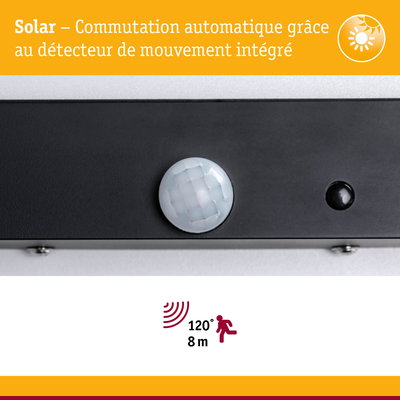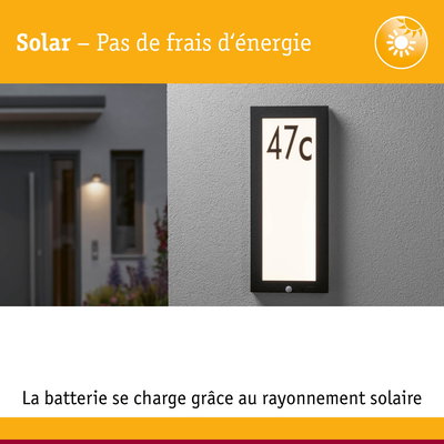 Posé au mur ou au plafond, le panneau Outdoor dans les dimensions 20x60 cm diffuse une lumière étendue chaleureuse. Deux en un, le panneau peut se transformer en éclairage de numéro de maison à l'aide des jeux de chiffres et de lettres adhésifs fournis. Vous pouvez sélectionner le fonctionnement continu ou l'activation par détecteur de mouvement.