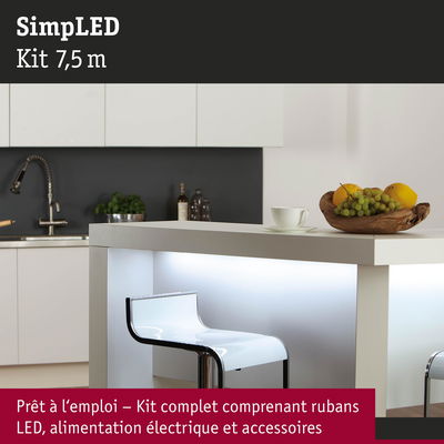 SimpLED Strip LED Blanc lumière Kit complet 7,5m revêtue 20W 60 LEDs/m 6500K 24VA