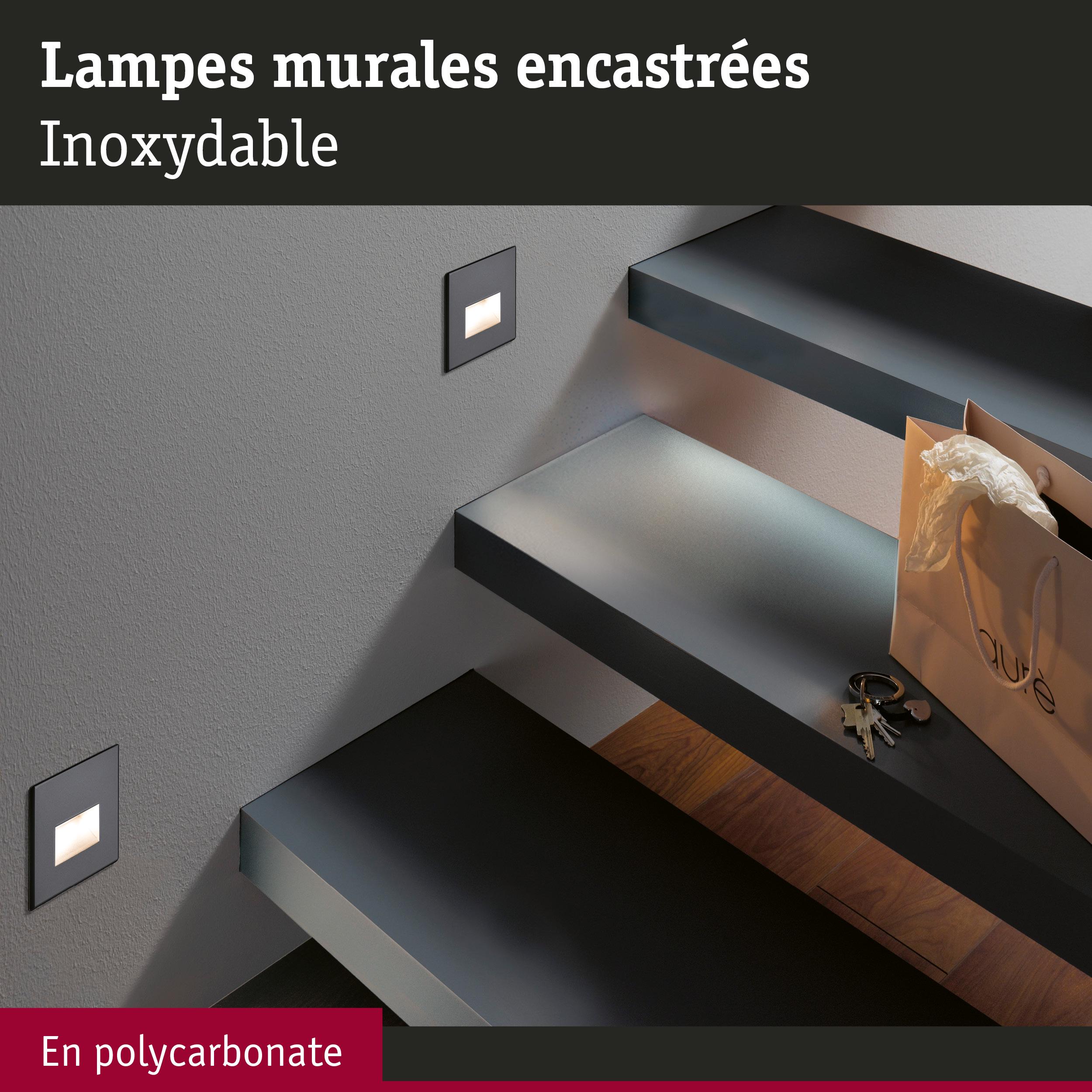 La lumière ne doit pas toujours venir d'en haut. Composé de trois encastrés muraux LED blanc chaud Edge en Noir mat, le kit est conçu spécialement pour le montage mural. Il crée des effets lumineux attrayants et augmente la sécurité en éclairant, par ex., les couloirs ou les escaliers. Les ampoules LED intégrées séduisent par leur efficacité énergétique et leur longue durée de vie.