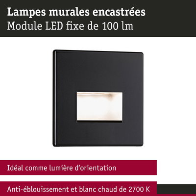 Kit Encastré mural LED Edge Kit de 3 carré 80x80mm 3x1,2W 3x50lm 230V 2700K Noir mat