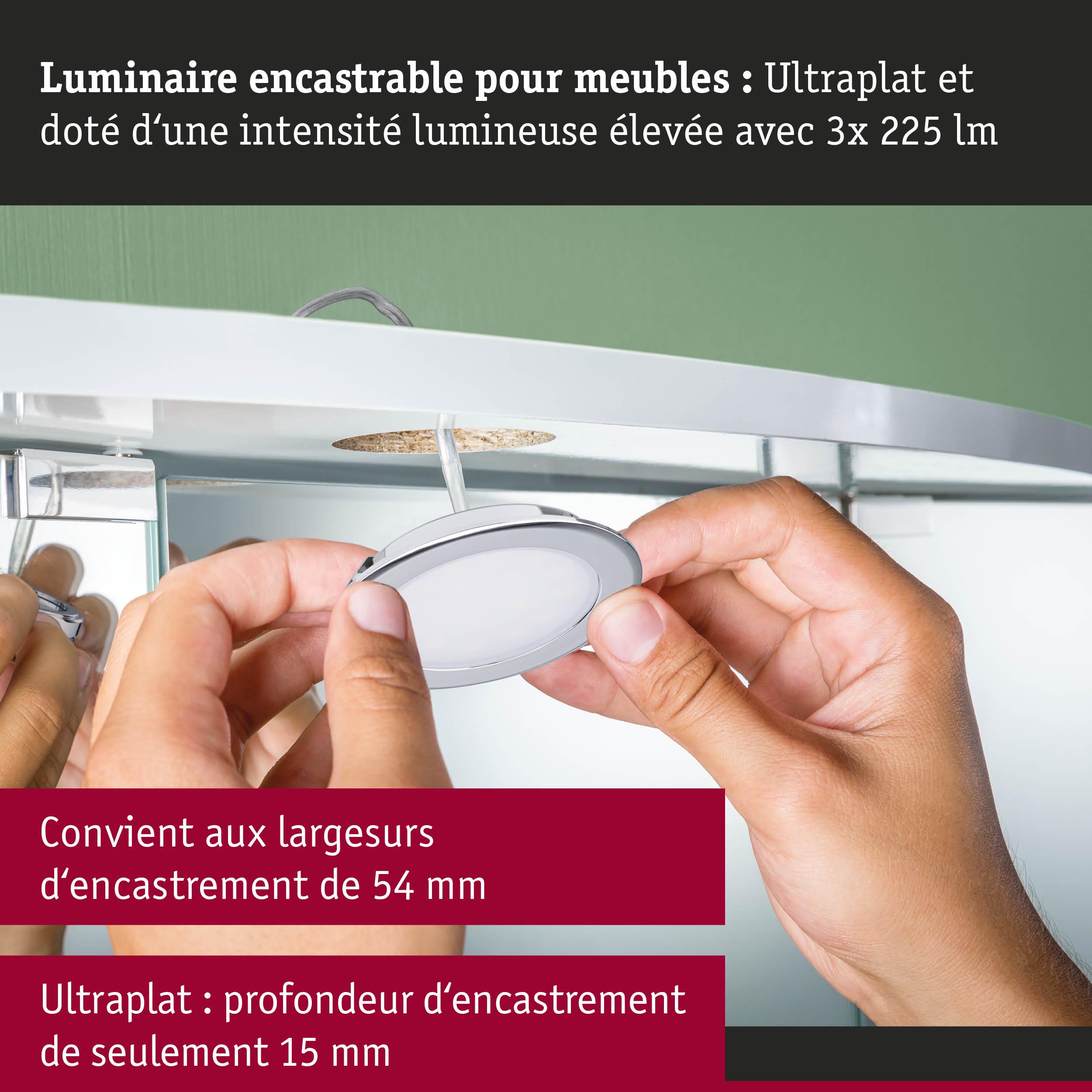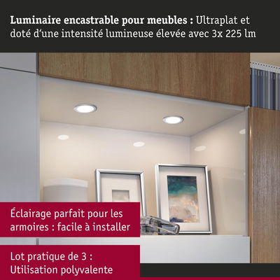Éclairages encastrés LED pour meubles Kit de 3 rond 65mm 3x2,5W 3x180lm 230/12V 4000K Chrome