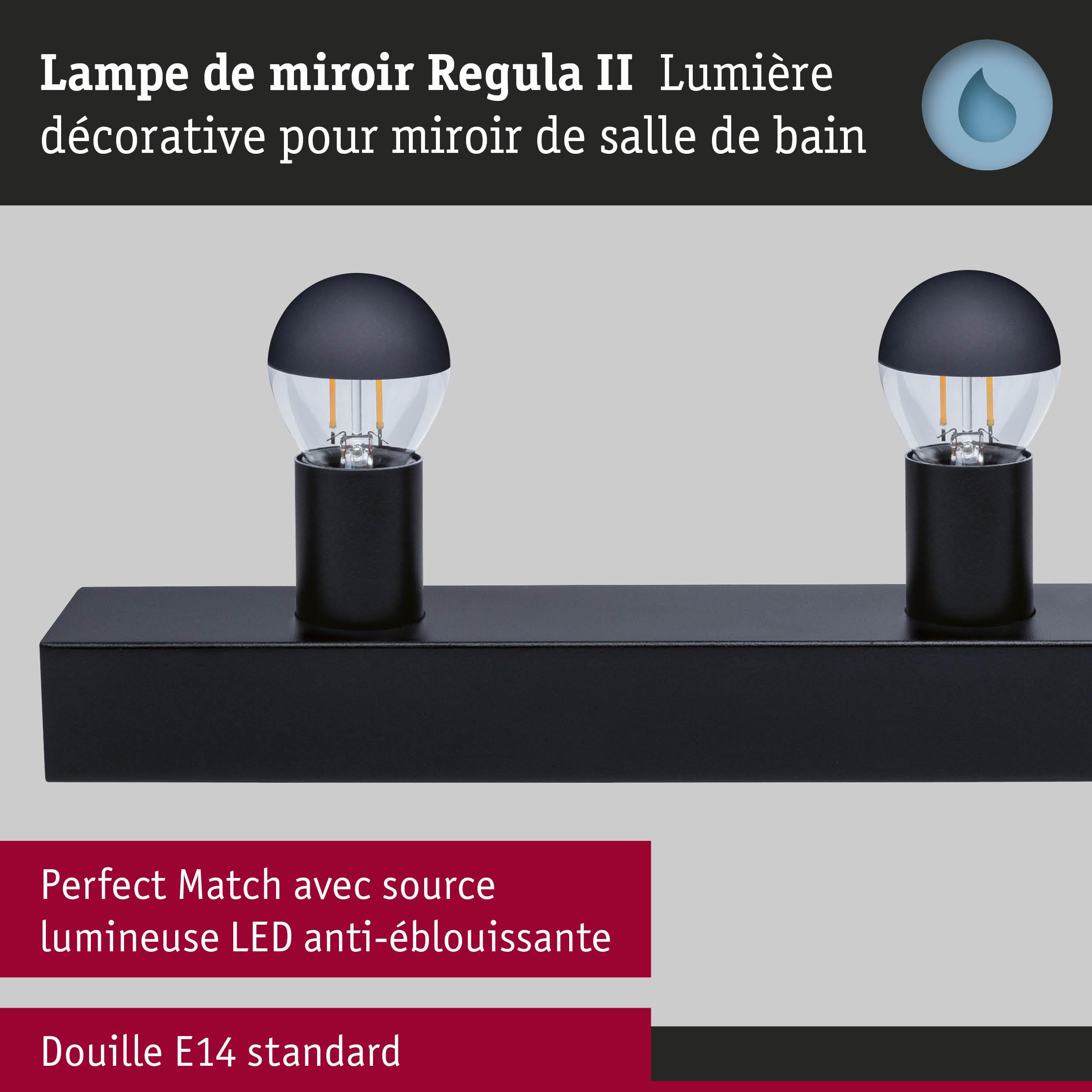 Kit Éclairage de miroir Regula II ampoules incluses 3-flammes IP44 E14 2700K 3x470lm 230V 3x4,5W gradable Noir/Calotte réflectrice en noir mat