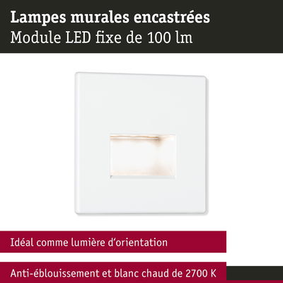Kit Encastré mural LED Edge Kit de 3 carré 80x80mm 3x1,2W 3x50lm 230V 2700K Blanc dépoli