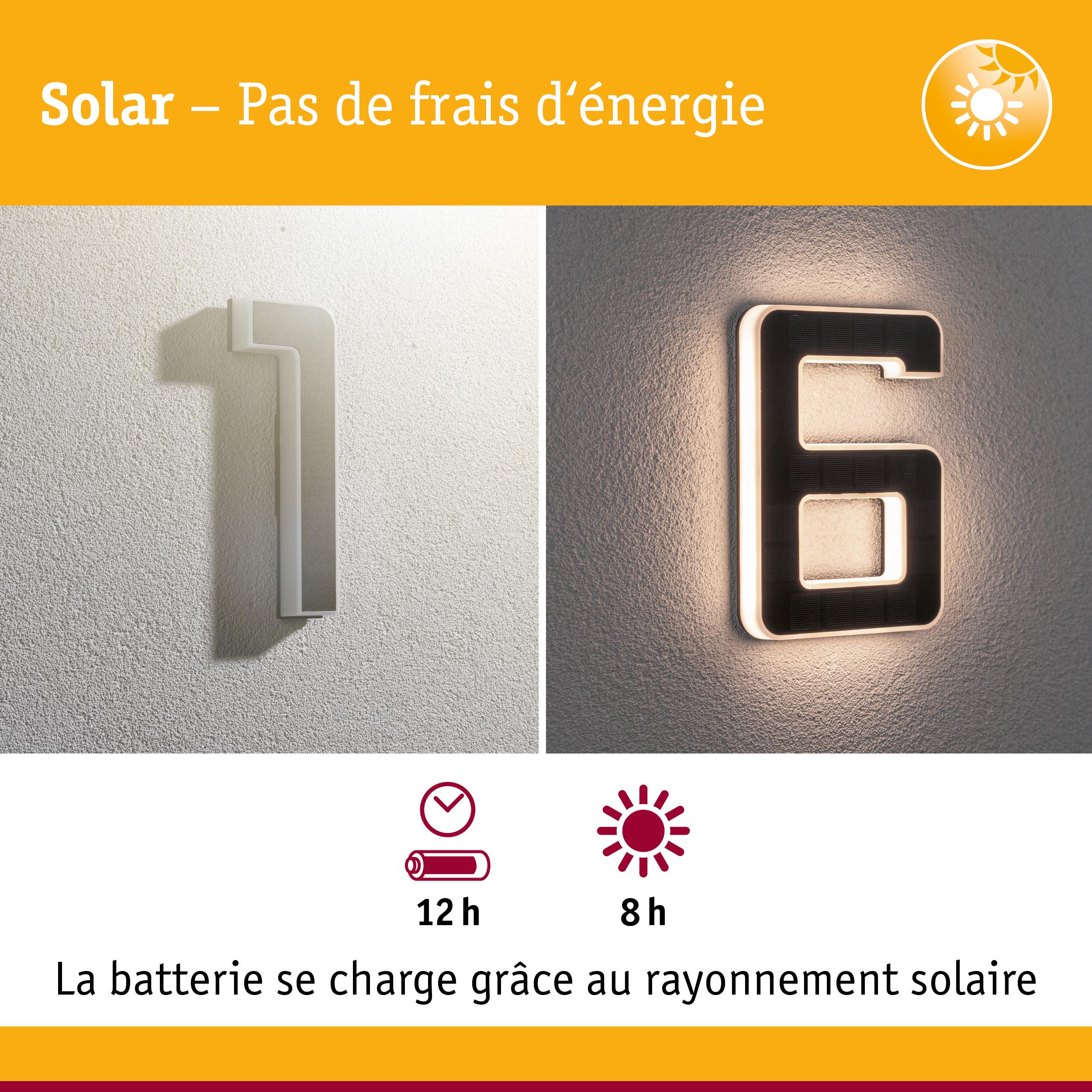 Le numéro 16 lumineux est la solution idéale pour éclairer votre numéro de maison, que ce soit seul ou combiné avec d'autres chiffres. Grâce à sa batterie solaire, il peut être installé de manière autonome sur le mur de la maison, sans raccordement électrique. Pendant la journée, le panneau solaire (non visible) se charge grâce à la lumière du soleil, et la nuit, le numéro est illuminé de manière indirecte. Plutôt que d'acheter les deux chiffres séparément, le numéro 16 est disponible en set à prix avantageux.