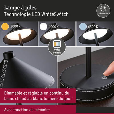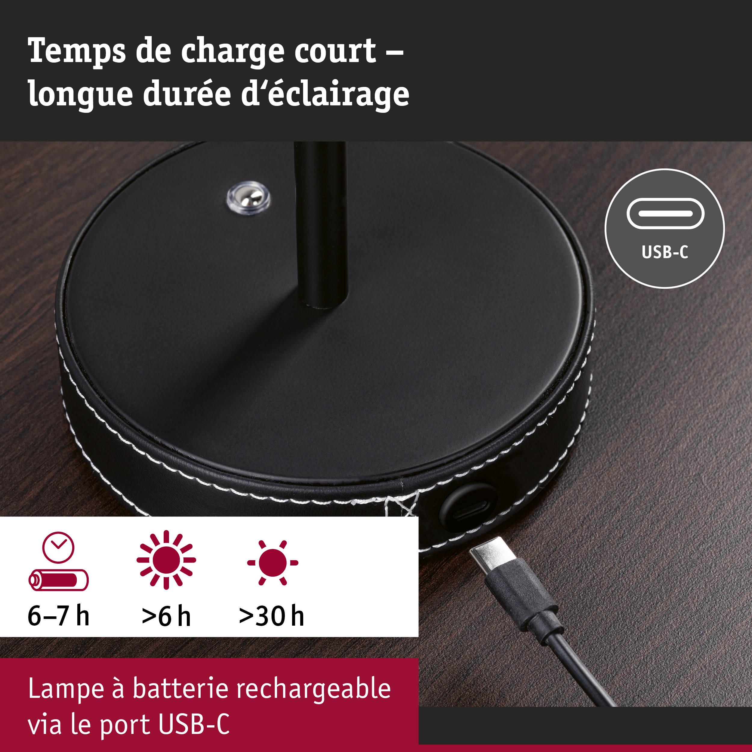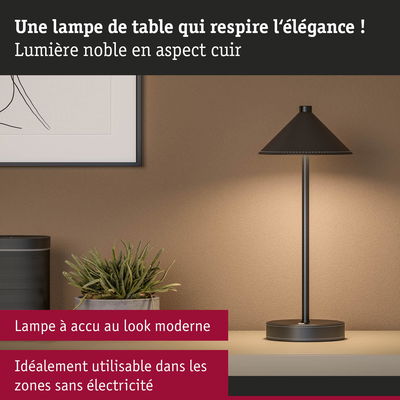 Cette lampe à poser exceptionnelle d’aspect cuir et avec surpiqûres n’attire pas seulement tous les regards, mais elle est aussi extrêmement pratique et flexible. Que ce soit dans le salon, la chambre à coucher ou le couloir, la lampe à poser mobile Pellini en Noir mat assure un éclairage confortable et apporte une touche de style grâce à son design unique. Un interrupteur tactile permet de régler différentes couleurs de blanc. De plus, elle est gradable, ce qui permet de personnaliser l’éclairage. La fonction mémoire du luminaire se souvient toujours du dernier réglage d’éclairage utilisé - pour un confort maximal. La lampe à poser mobile Pellini ne séduit pas seulement par sa fonctionnalité, mais aussi par son côté pratique. Avec un temps de charge court et une longue durée d’éclairage, elle est toujours prête à l’emploi et, grâce à sa batterie rechargeable via USB-C, elle est écologique et durable.