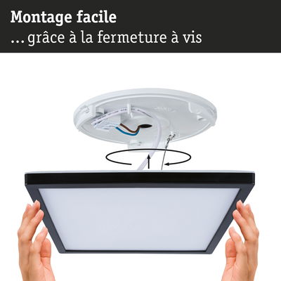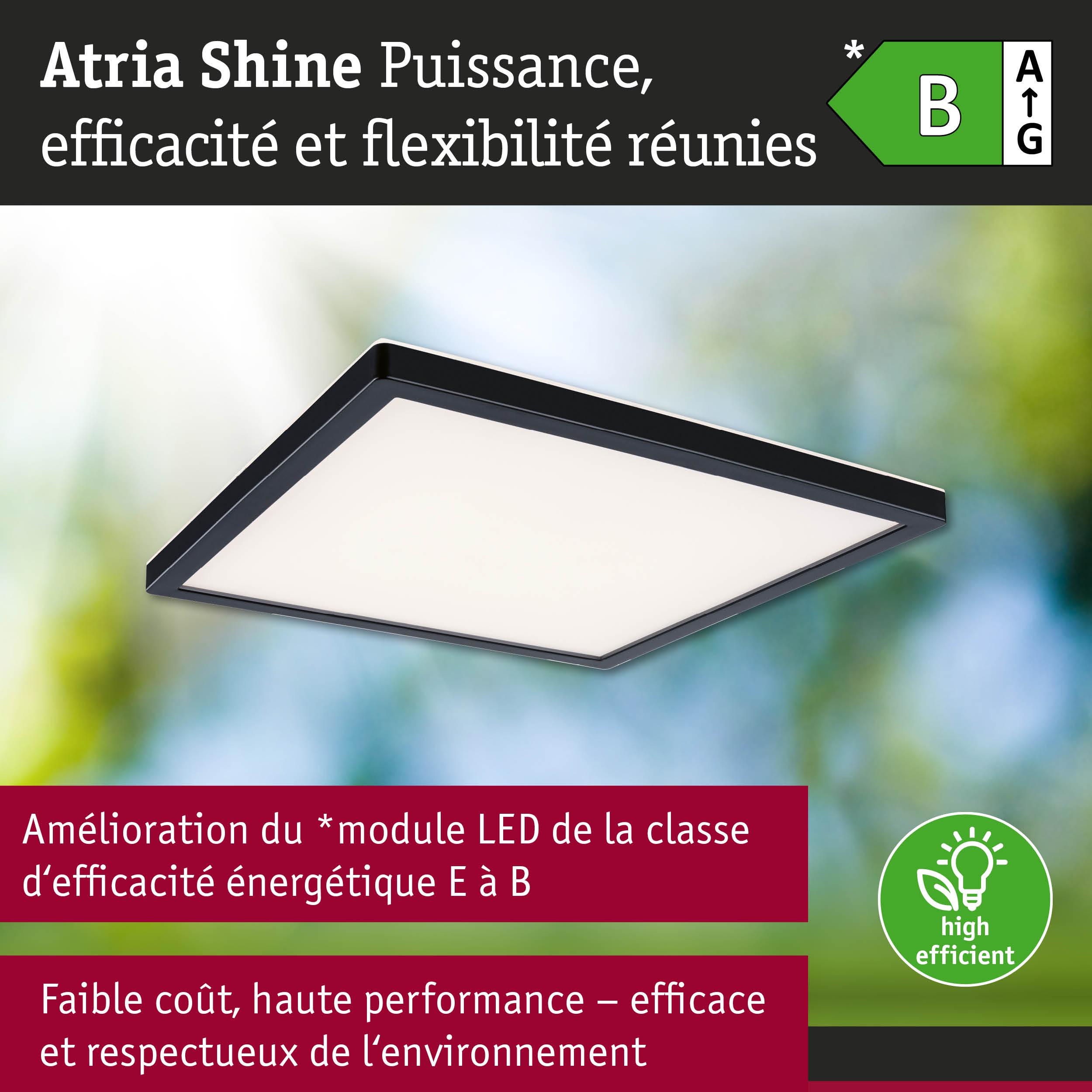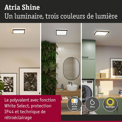 Le carrépanneau Atria Shine en Noir est vraiment polyvalent grâce à sa grande performance énergétique et sa variété de couleurs de feu ! Avec sa performance énergétique améliorée, passée de la classe E à la classe B, le nouveau panneau Atria Shine offre une solution d’éclairage innovante et durable. Cette réduction significative de la consommation d'énergie est non seulement bénéfique pour l'environnement, mais aussi pour le porte-monnaie. Avant l'installation, l'interrupteur White Select permet de choisir entre trois températures de couleur : blanc chaud (3000 K), blanc neutre (4000 K) ou blanc lumière du jour (6500 K). Que ce soit pour un espace de vie confortable, l'éclairage fonctionnel d'une cuisine ou un bureau bien éclairé, il existe une atmosphère lumineuse adaptée à chaque pièce. Avec une luminosité impressionnante de 15,7W, le panneau Atria Shine est également idéal pour les applications exigeantes qui nécessitent beaucoup de lumière. L’aspect visuel du luminaire se distingue par son apparence presque flottante, obtenue grâce à la technologie Backlight efficace. Grâce à son design sobre, il s'intègre parfaitement dans différents styles d'aménagement et peut même être utilisé dans la salle de bains grâce à sa protection IP44. Le montage au mur ou au plafond est simple grâce à la fermeture rotative et au clip de fixation rapide.