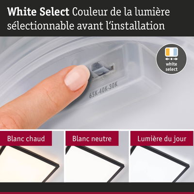 - Fonction White Select pour un choix individuel de la température de couleur (2700 K, 4000 K, 6500 K) avant l'installation