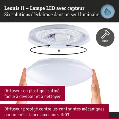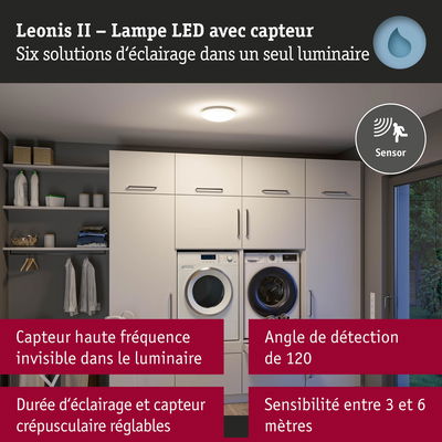 Plafonnier LED Leonis II Détecteur de mouvement crépusculaire (HF) IP44 3000 - 5700K 1750lm 230V 16,5W gradable Blanc