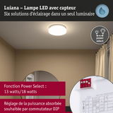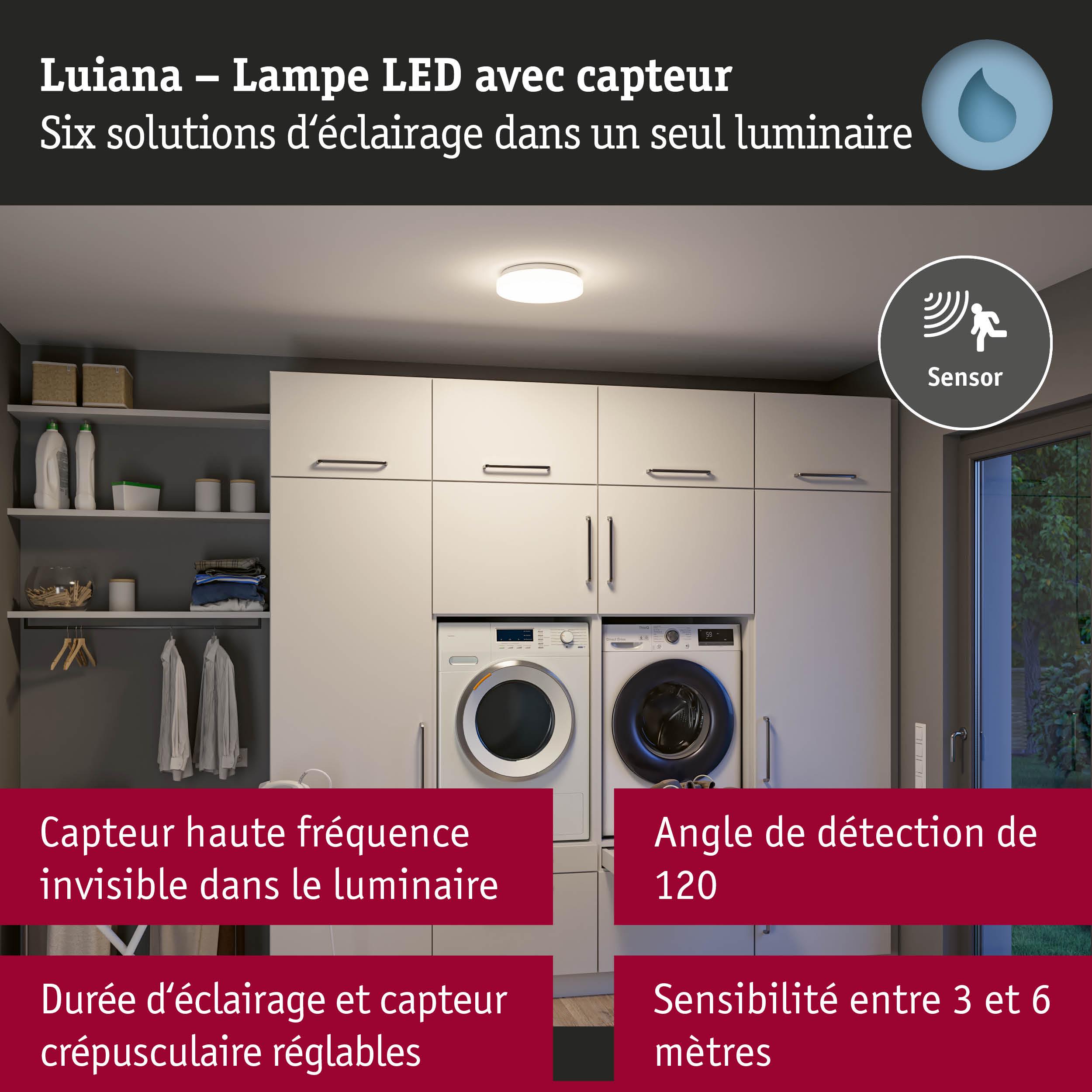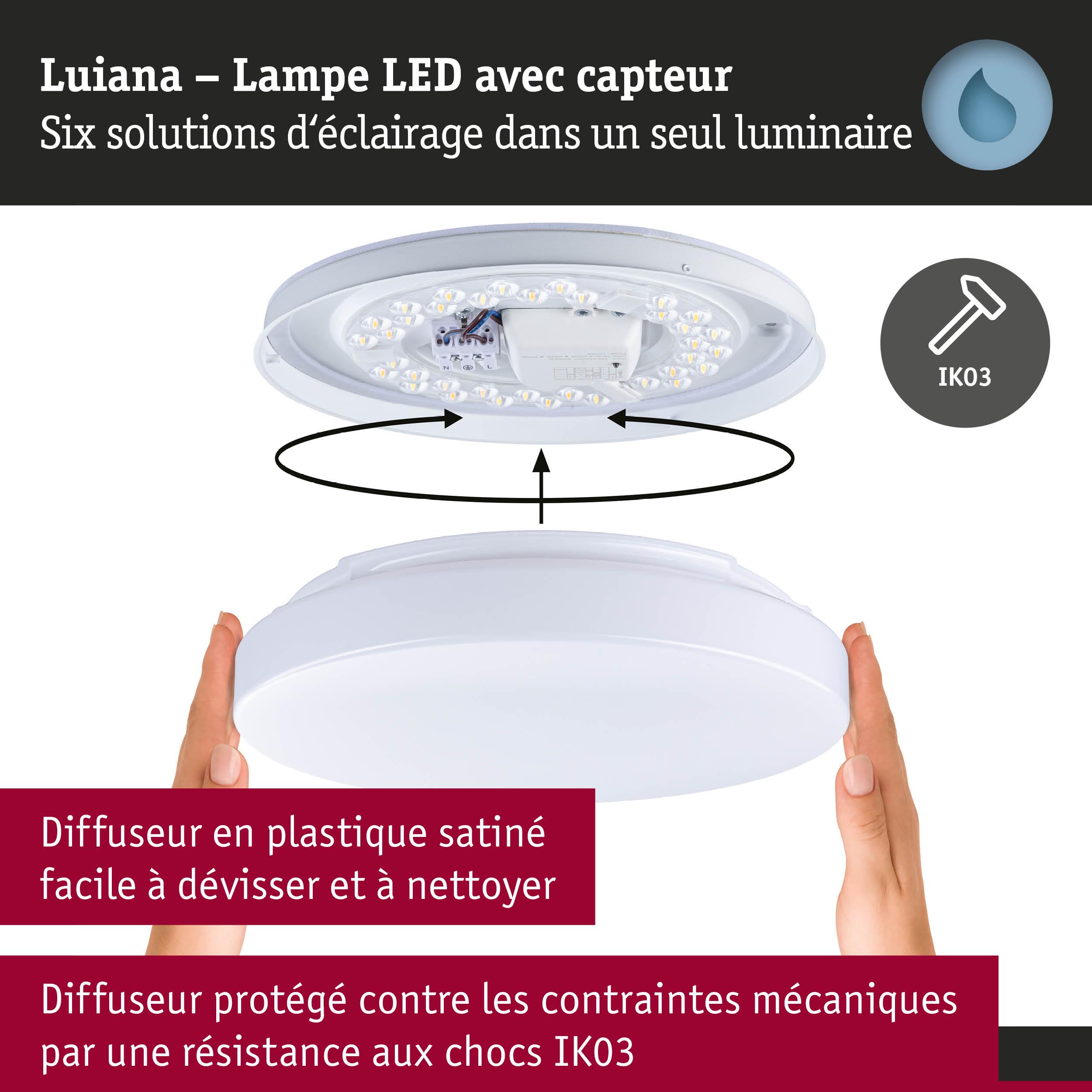 Plafonnier LED Luiana Détecteur de mouvement crépusculaire (HF) IP44 3000 - 5700K 1750lm 230V 16,5W gradable Blanc