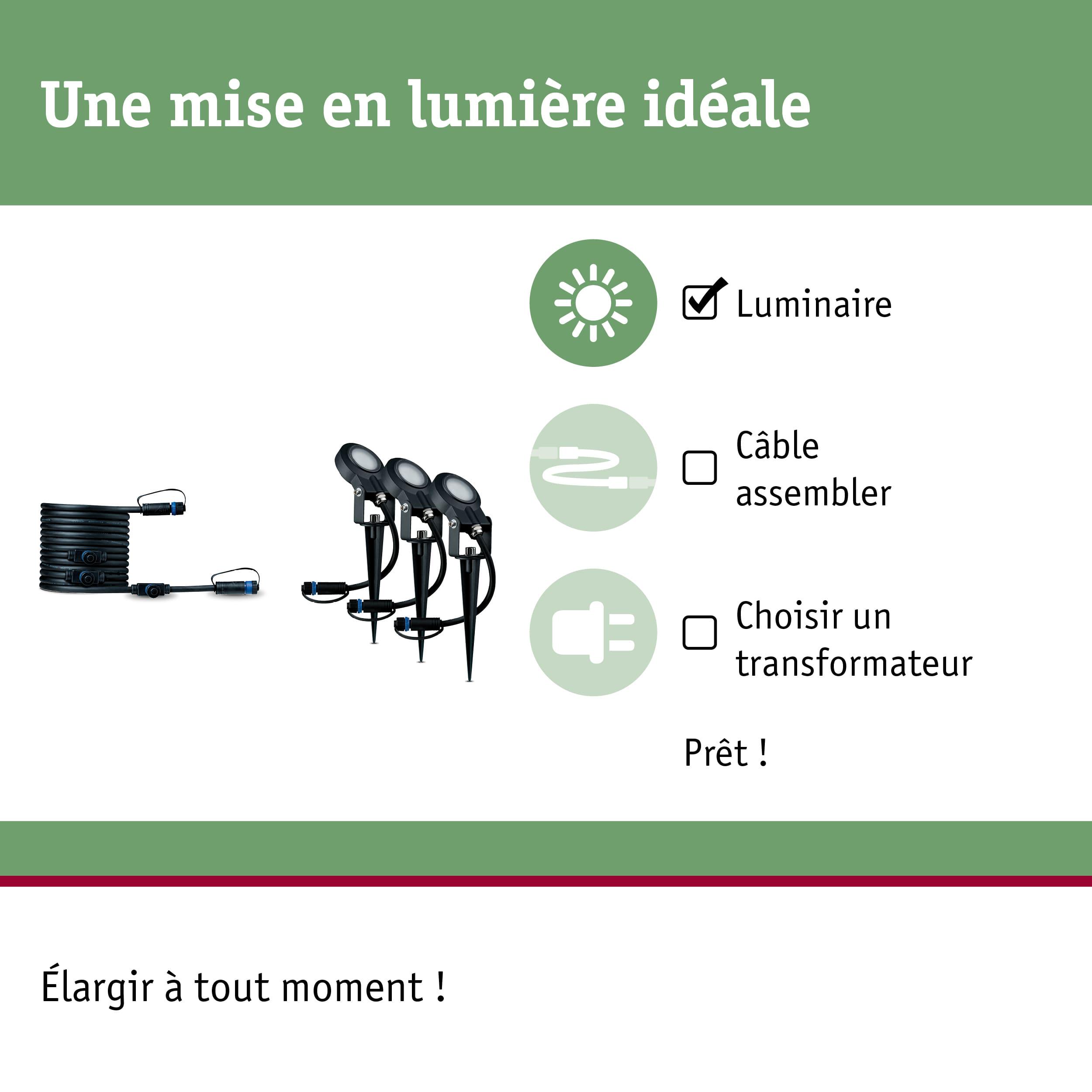 - Kit d'extension Plug & Shine comprenant 3 luminaires et un câble de raccordement