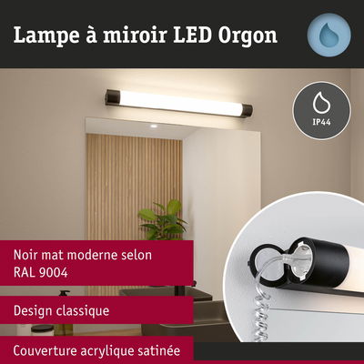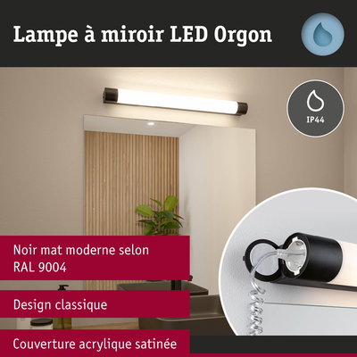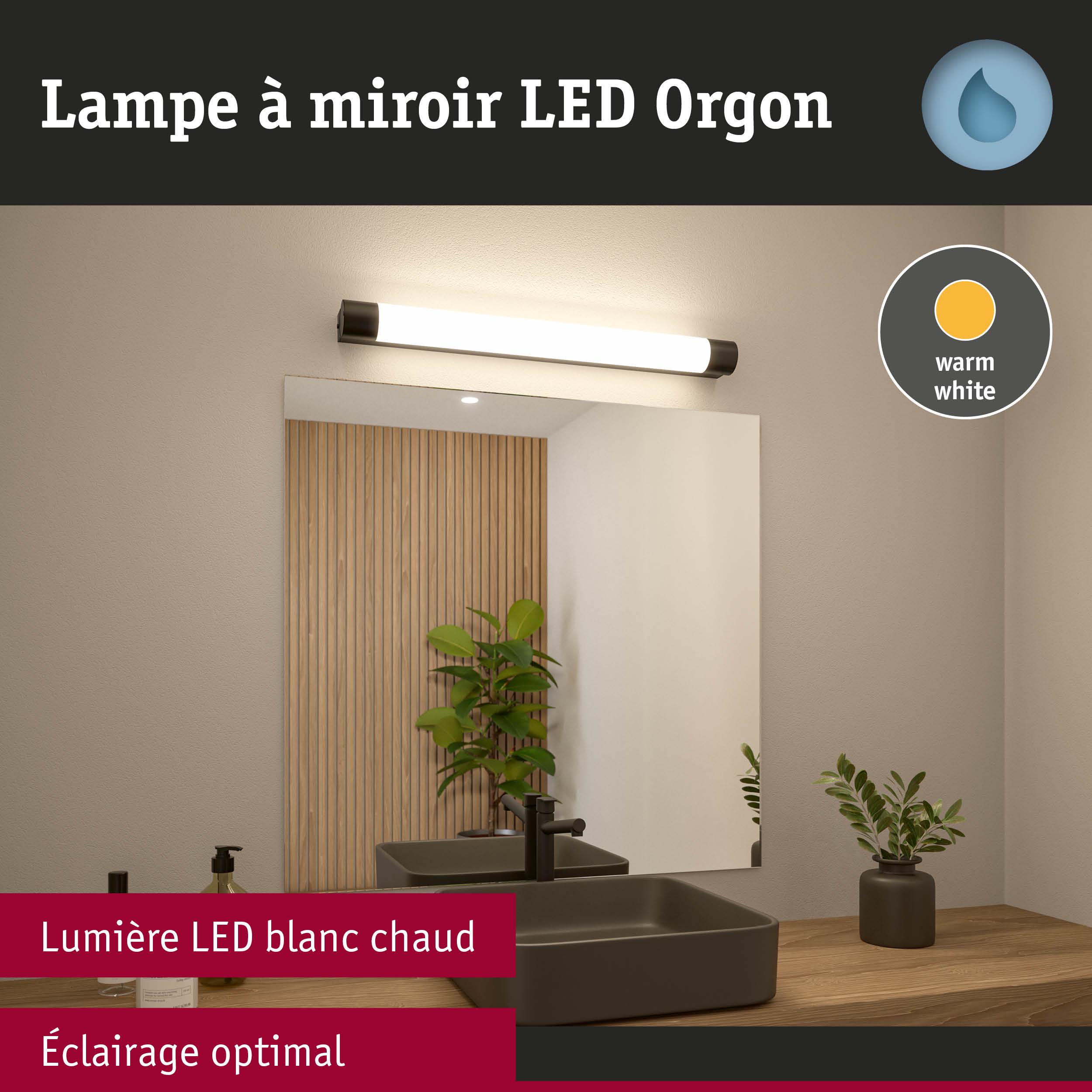 Selection Bathroom Éclairage de miroir LED Orgon Socket IP44 3000K 850lm 230V 10,5W Noir