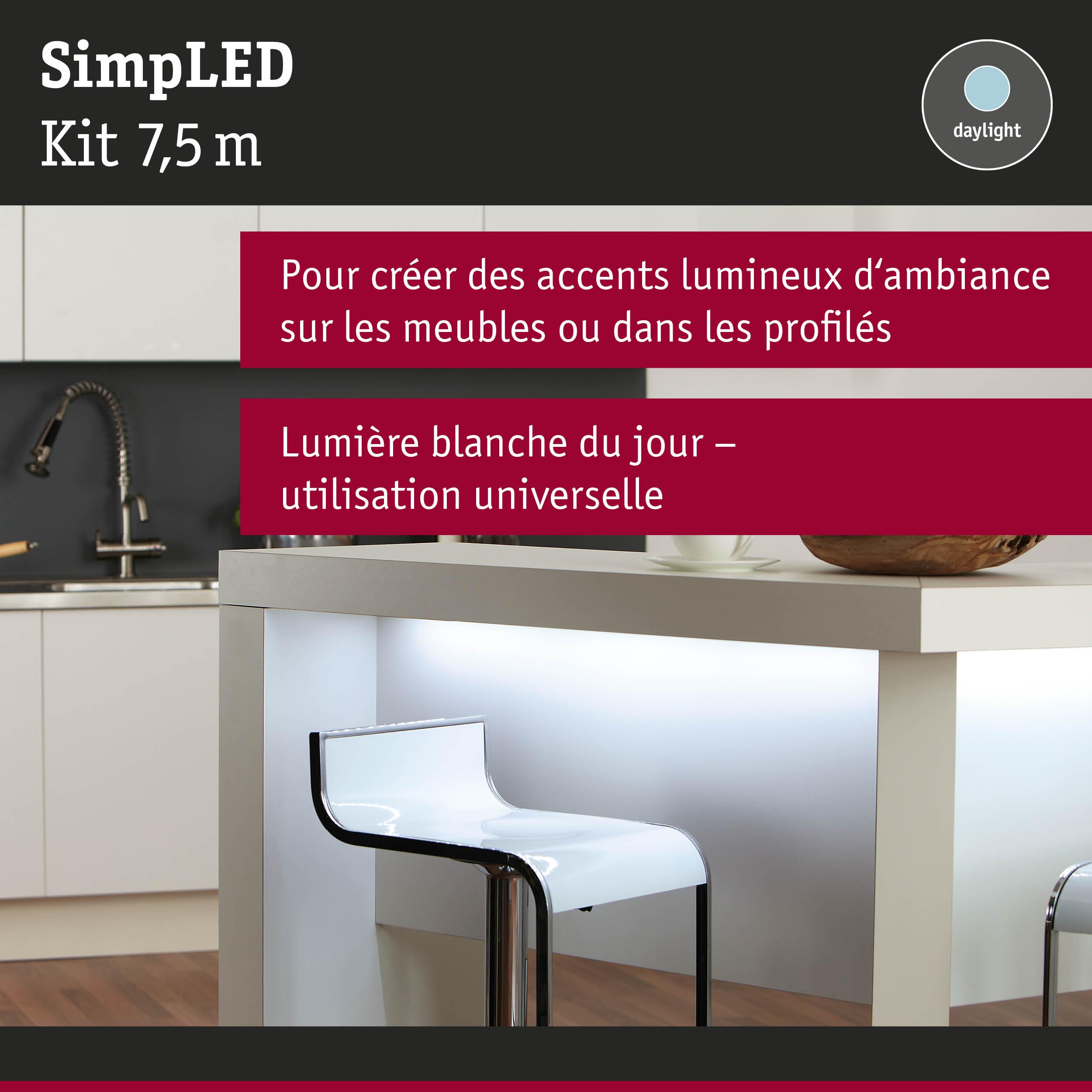SimpLED Strip LED Blanc lumière Kit complet 7,5m revêtue 20W 60 LEDs/m 6500K 24VA