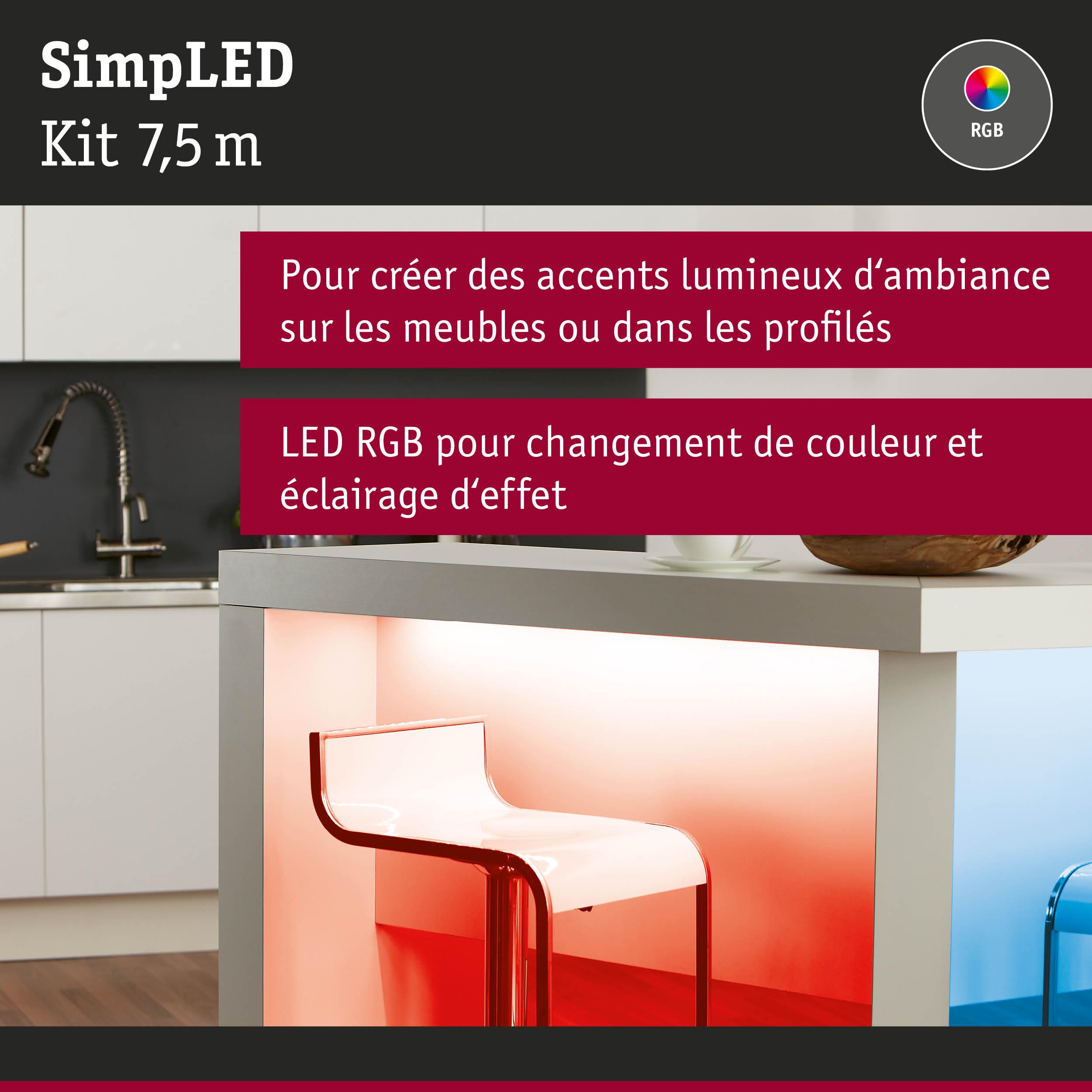 SimpLED Strip LED RGB Kit complet 7,5m revêtue 26W 120lm/m 30 LEDs/m RGB 36VA