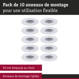 Les anneaux fixes pour luminaires encastrés en Kit de 10 et de couleur Blanc en plastique sont une solution idéale pour un éclairage flexible. Le circlip discret s’adapte parfaitement au luminaire et assure un aspect harmonieux. Adapté aux ampoules d'un diamètre de 50 mm comme GU10 ou LED Coins Paulmann