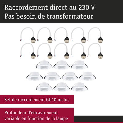 Spot encastré Kit de 10 fixe rond 90mm GU10 max. 10x10W 230V gradable Blanc