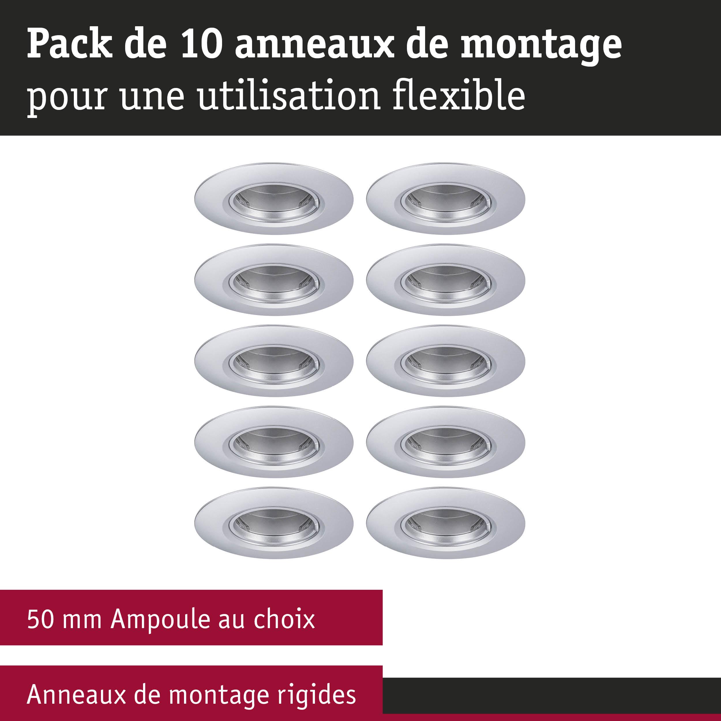 Spot encastré Kit de 10 fixe rond 90mm GU10 max. 10x10W 230V gradable Chrome mat