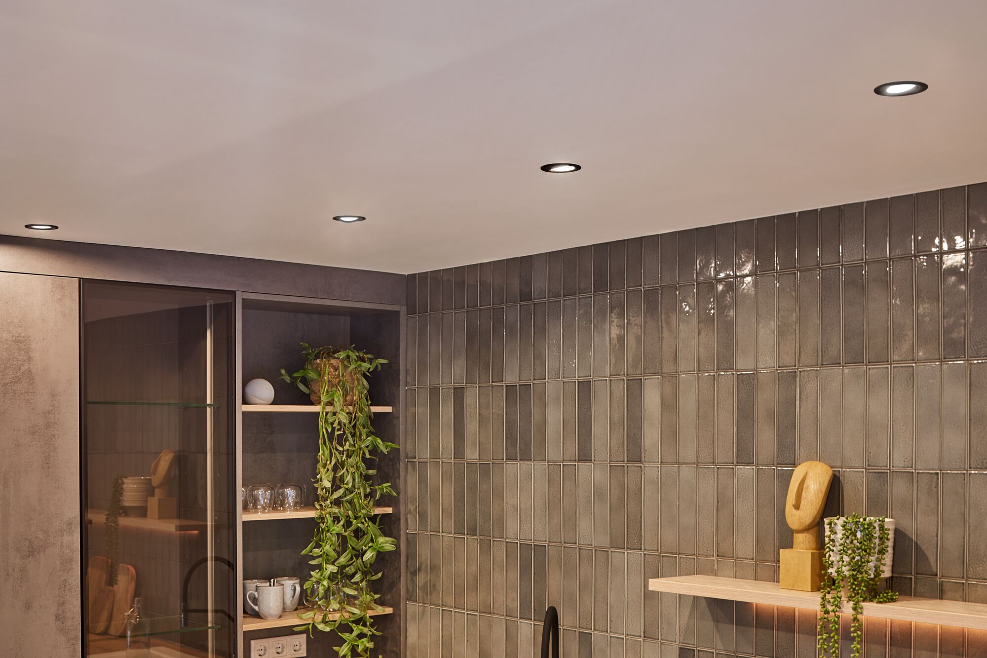 Les spots encastrés Nova ronds (kit de 3) en Noir mat avec LED-Coin remplaçable conviennent aussi bien à l'équipement de nouvelles installations qu'au remplacement d'équipements existants. De forme particulièrement plate, ils s'intègrent dans les plafonds disposant d'un espace creux de 30 mm seulement. Grâce à un raccordement par clips de fixation rapides, les luminaires individuels sont simples et rapides à monter. Les spots garantissent à la fois une lumière de travail blanc chaud et une atmosphère bien-être. Grâce à leur capacité de pivotement, les spots peuvent être orientés individuellement.
