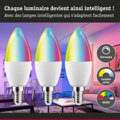 Standard 230 V Smart Home Zigbee 3.0 Bougie LED E14 3x470lm 3x5W RGBW+ gradable Dépoli