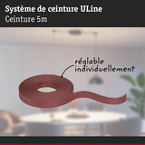 La ceinture ULine sert de base au système de ceinture ULine 48V. Disponible en deux longueurs (5 m et 10 m) et en cinq couleurs (du noir classique à l'orange exceptionnel), elle peut être placée librement dans la pièce et, si nécessaire, raccourcie à l'aide de ciseaux. Les luminaires correspondants peuvent être disposés à volonté sur la sangle. La sangle de 2,1 cm de largeur se fixe au mur, au plafond ou au sol à l'aide de supports adaptés. Il est ainsi possible de réaliser un concept d'éclairage personnel en quelques étapes. Le matériau Dacron de la sangle, résistant à la déchirure et durable, assure une durée de vie élevée et une grande capacité de charge. Les sangles sont revêtues et faciles à nettoyer. Un point fort particulier est le passage invisible du courant à l'intérieur, qui permet un aspect propre sans fils visibles. Deux embouts de finition en silicone sont inclus avec toutes les sangles pour une finition esthétique. Le système de ceinture ULine est une solution innovante pour des expériences lumineuses uniques dans toutes les dimensions de la pièce et permet une mise en scène lumineuse ciblée sur les murs, les plafonds et les sols.