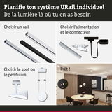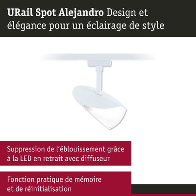 Le Spot URail Alejandro en Blanc signal attire tous les regards, au mur ou au plafond, et met la pièce en valeur grâce à son design élégant. La fonction 3-Step-Dim permet de contrôler facilement l'éclairage grâce au commutateur mural fourni, sans variateur mural supplémentaire. Avec ses niveaux de gradation de 100 %, 50 % et 25 %, le spot propose une commande d'éclairage flexible, adaptée à toutes les ambiances et situations. Les 4 000 Kelvin donnent lieu à une lumière blanc neutre agréable, qui éclaire parfaitement la pièce. Grâce à la puce LED encastrée à diffuseur, la lumière se diffuse de façon uniforme et n'éblouit pas, ce qui contribue à créer une atmosphère agréable. Les fonctions de sauvegarde et de réinitialisation sont particulièrement pratiques. Elles permettent de conserver la dernière luminosité paramétrée ou, au besoin, de réinitialiser la luminosité. Le design du spot confère à toutes les pièces une élégance sûre et des touches décoratives.