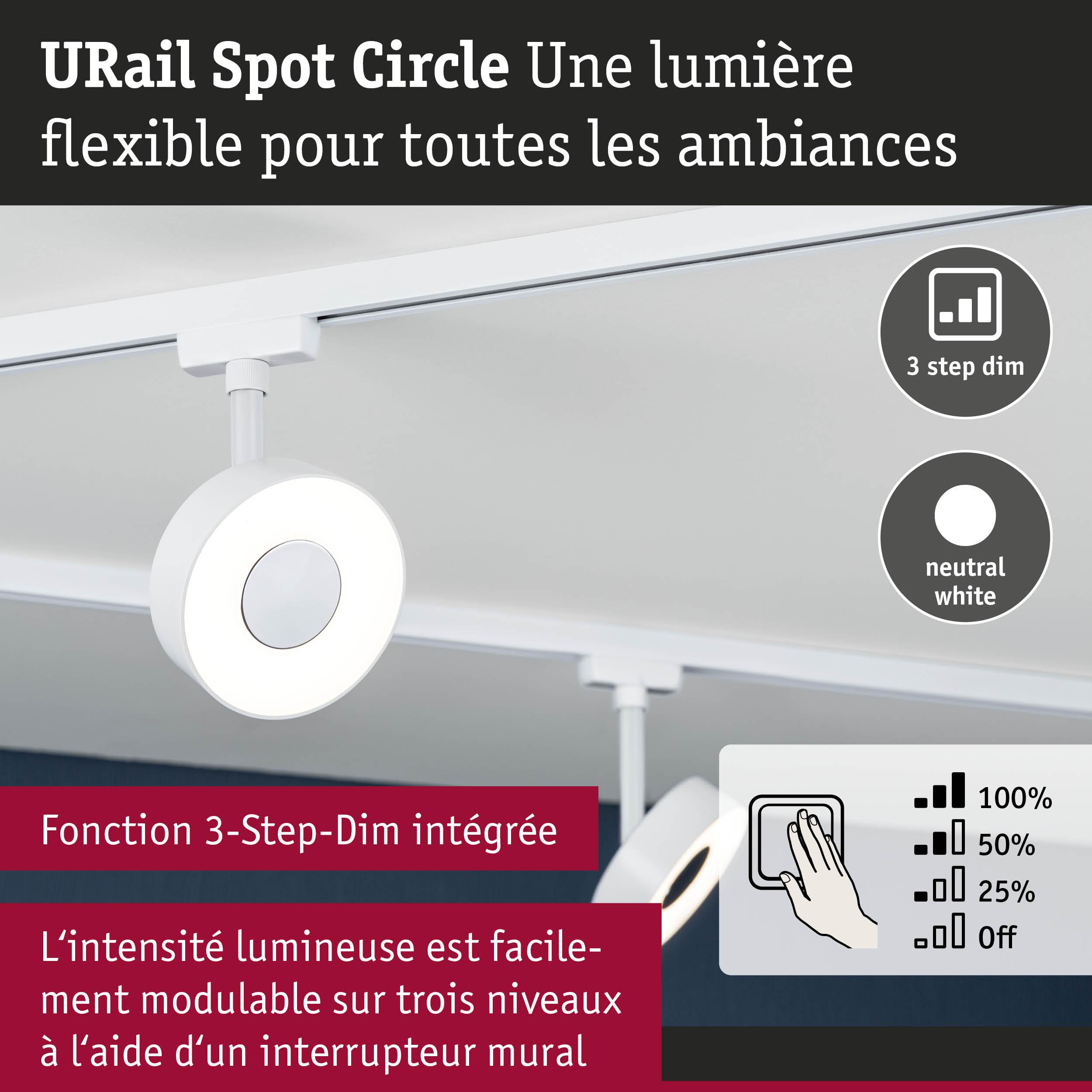 URail Spot sur rail 3-Step-Dim Circle 220lm 5W 4000K gradable 230V Blanc signal