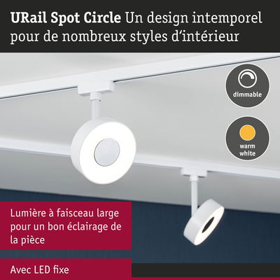 URail Spot sur rail Circle 180lm 5W 3000K gradable 230V Blanc signal