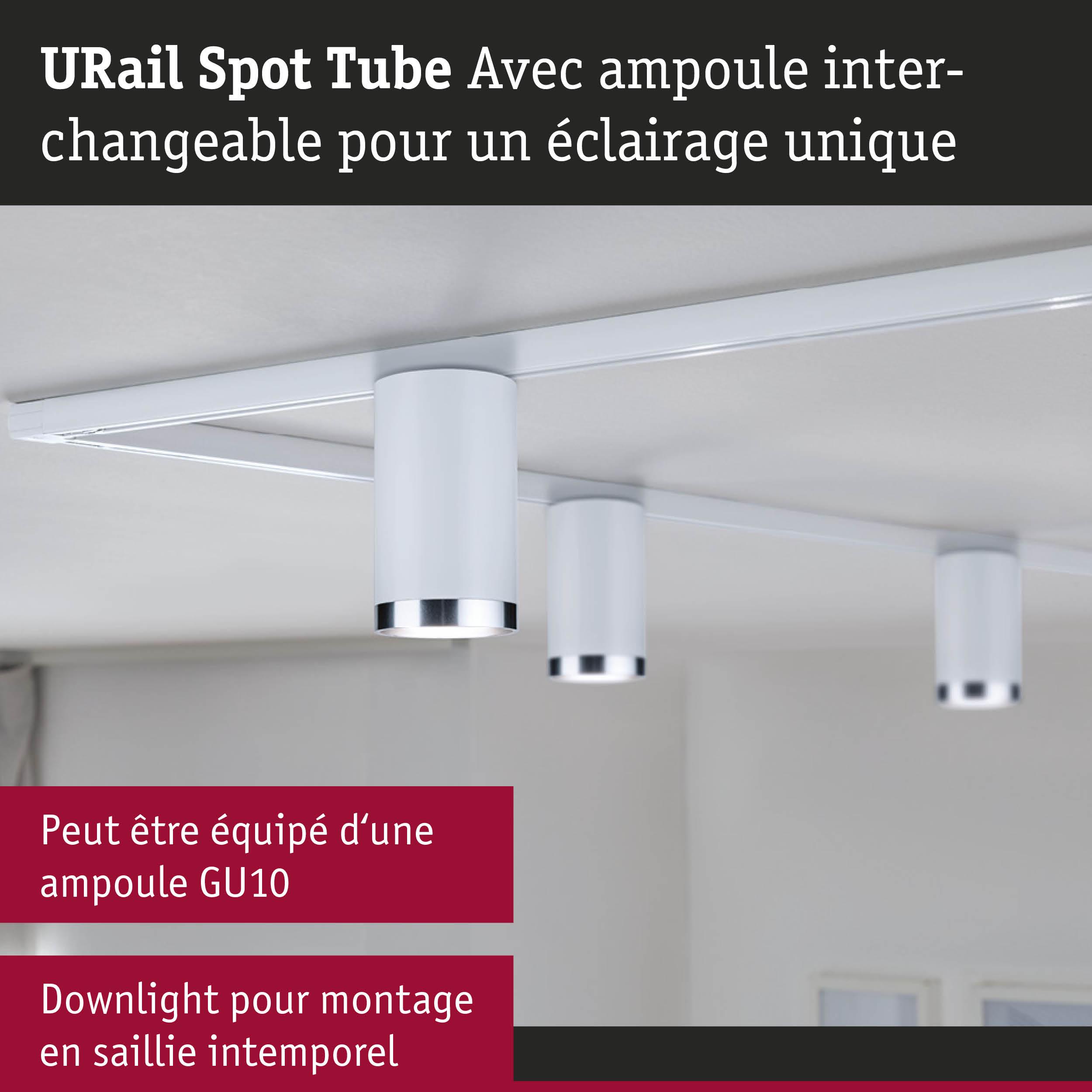 URail Spot sur rail Tube Spot individuel GU10 max. 10W gradable 230V Blanc signal