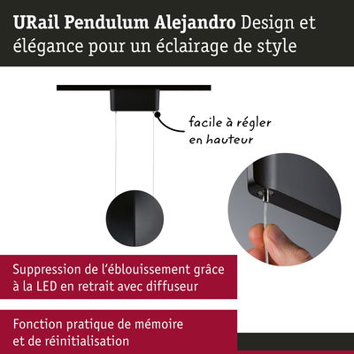 URail Suspension 3-Step-Dim Alejandro 800lm 10W 3000K gradable 230V Noir mat
